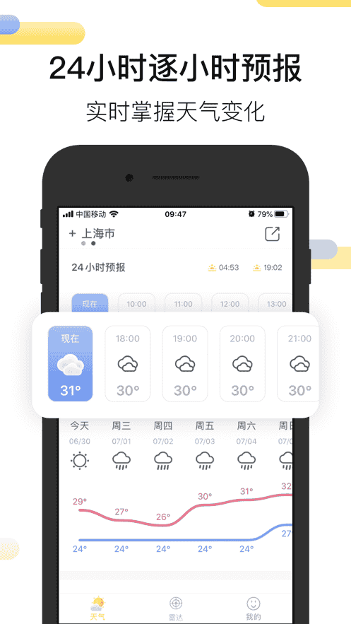 4、24小時逐小時預報,實時掌握天氣變化。