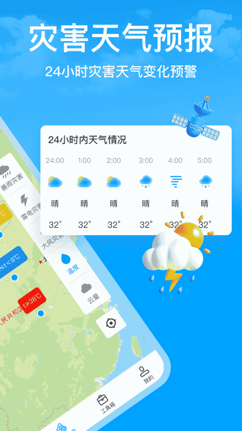 5、出現漬澇風險、山洪災害、中小河流洪水氣象風險以及臺風路徑預警等災害,及時通知您氣象,幫您提前做好氣象防范。