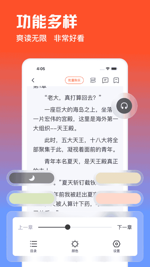 點眾閱讀App,一款包含各類品質小說隨心暢讀網羅全網熱門精品小說閱讀器,隨時隨地看小說,超全書庫,海量書籍,滿足你不同的閱讀需求,更新速度快,給你帶來不一樣的閱讀體驗!