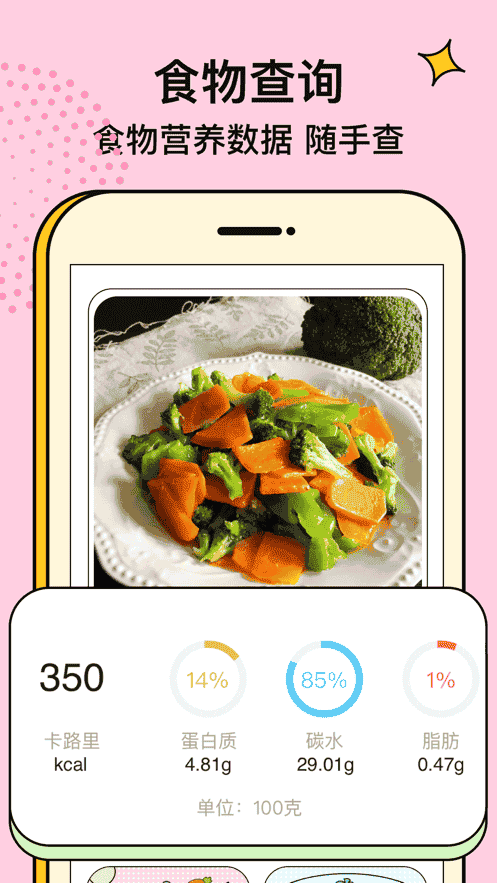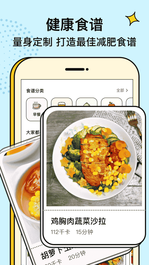 3、制訂符合自己的飲食計劃減肥、健身、增肌、身體塑形、產(chǎn)后恢復(fù)、孕期控制……不同時期、不同飲食計劃,不再發(fā)愁“吃什么”。