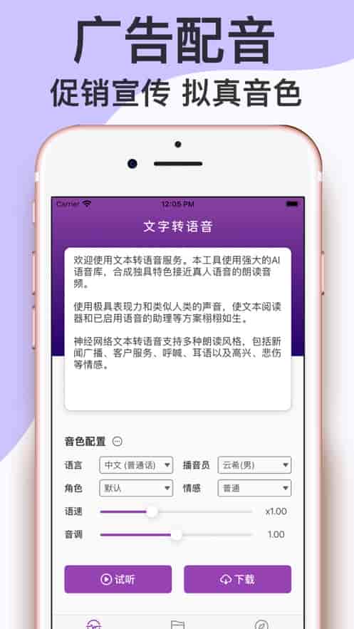 配音神器App,是一款專注于文字轉(zhuǎn)換語音的智能語音合成軟件,采用強大的語音合成技術(shù),打造簡單高效的配音服務(wù)平臺,滿足您的配音需求。
