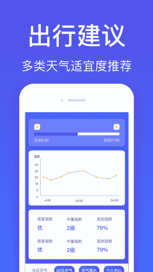 4、提供每日出行建議,多類天氣適宜度推薦。