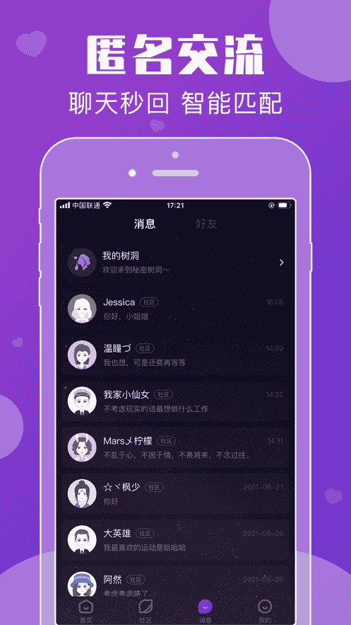 秘密樹洞App,可以附近靈魂交友和聊天傾訴,一款為了實現真實、用心交友而設計的,陌生人交友軟件,在這里,你可以通過多種維度進行篩選,尋找自己中意的人