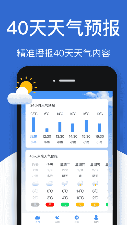 天氣預(yù)告40天天氣情況變化App,為用戶提供精確權(quán)威的天氣預(yù)報(bào),輕松查找您所需的天氣信息,提前預(yù)知天氣情況從容規(guī)劃未來(lái)行程!