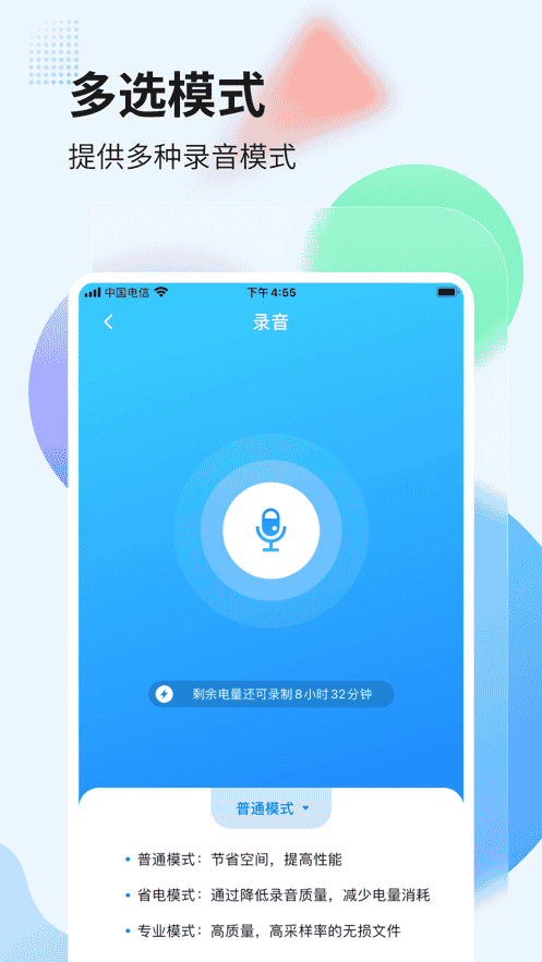 2、多選模式,提供多種錄音模式,方便快捷、快速搞定。