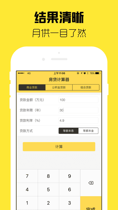 房貸計算器App,專業的房貸銀行公積金貸款計算器,支持多種貸款方式,智能計算最優貸款計劃。界面清晰整潔,還款計劃一覽無余!千萬用戶共同的選擇。
