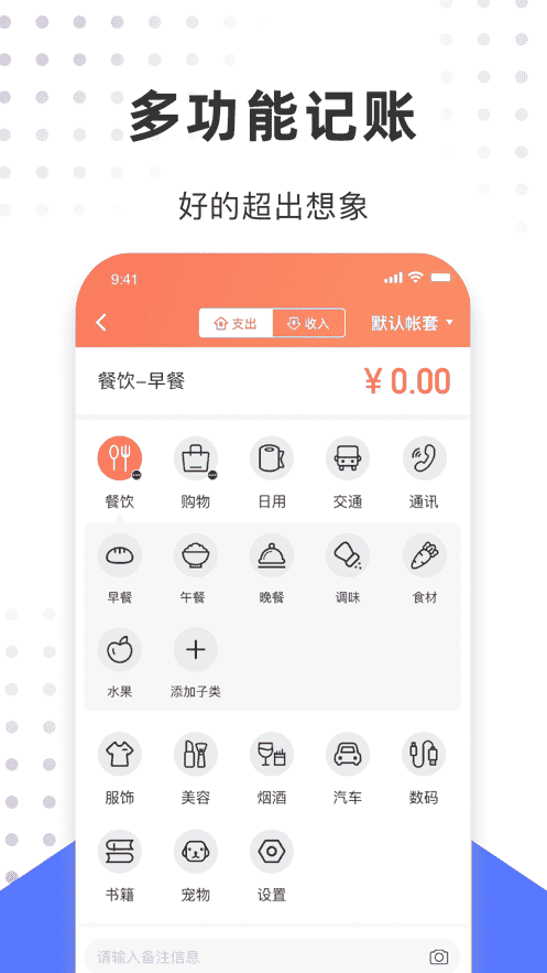 3、超強(qiáng)的備注智能提示信息,使你記賬的過(guò)程變得越來(lái)越簡(jiǎn)單,變得越來(lái)越順心。