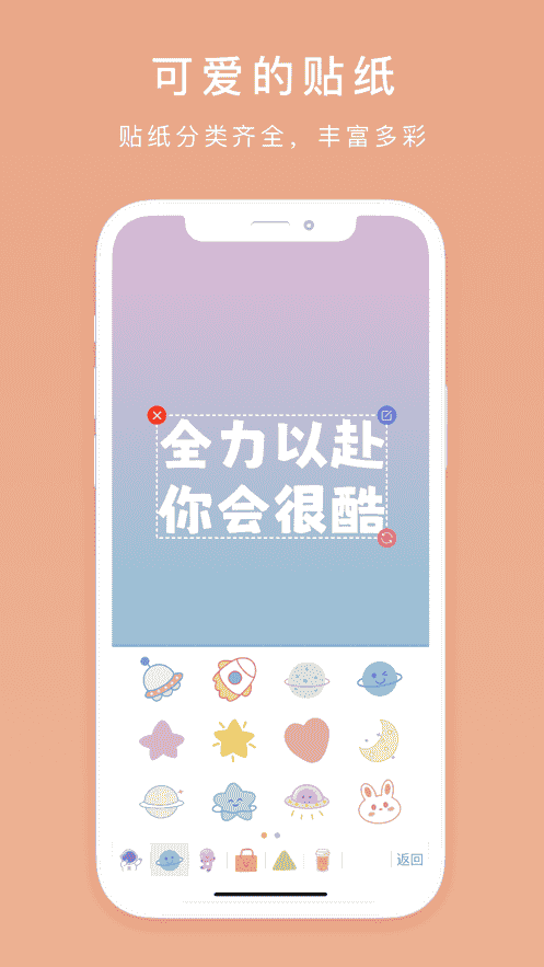 4、豐富多樣的背景色,支持數十種漸變色,可愛的貼紙,貼紙分類齊全,豐富多彩。