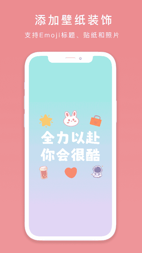 3、豐富多樣的中文字體,Emoji表情和貼紙,多種壁紙效果簡單易上手,一鍵定制專屬壁紙。
