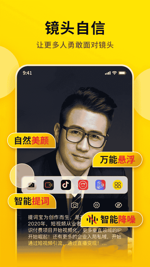 提詞寶App,是視頻號號主都在用的懸浮提詞器,臺詞會懸浮至主屏幕上方,打開您手機上任意一款APP進行直播或美顏拍攝,適用市場上全部APP。