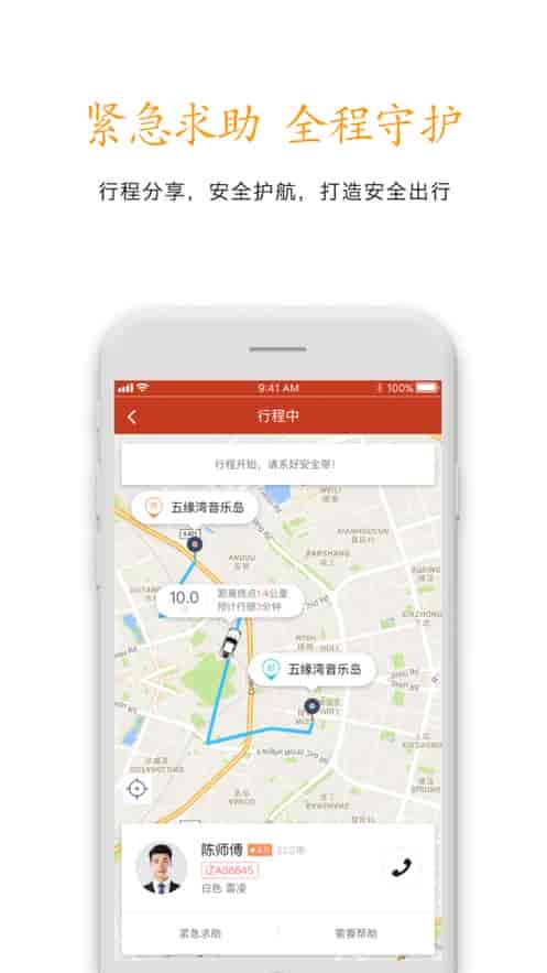 2、緊急求助,全程守護,行程分享,安全護航,打造出安全出行。