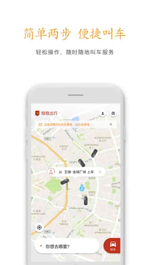 穩穩出行App,旨在打造出智慧出行生態系統,在您需要出行時,智能系統很快幫您選擇附近車輛,為您的出行上路全程保駕護航!