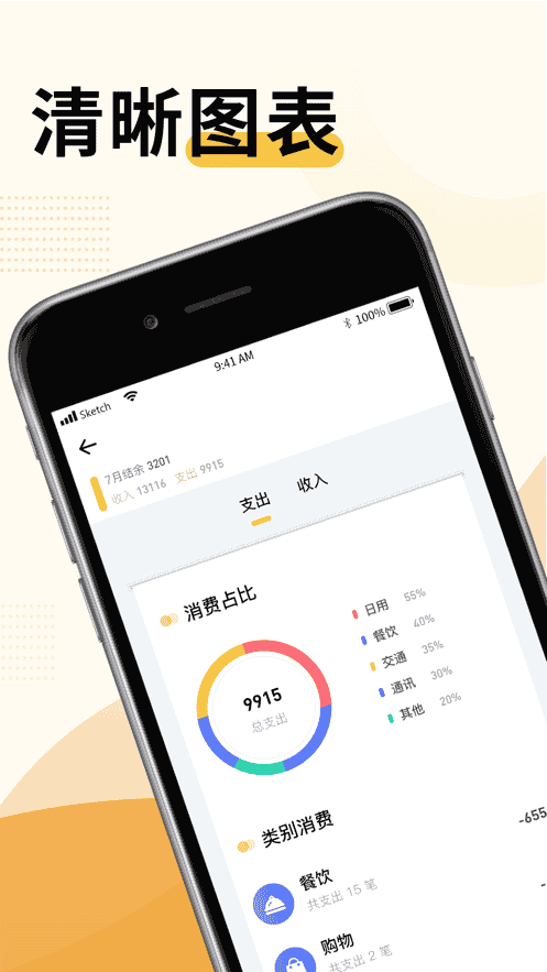 2、支持多設(shè)施同步做賬,實時備份防丟失,預置分類、每月起始日期、專享報表。