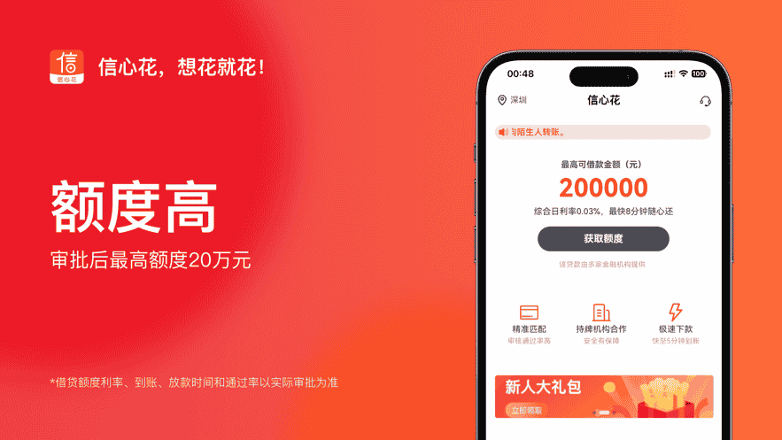 信心花App小額貸款低息貸款軟件廈門呼啦圈信息技術(shù)有限公司打造,是一個(gè)提供便捷現(xiàn)金貸款服務(wù)的小額快速貸款平臺(tái),致力于解決客戶的緊急貸款要求。