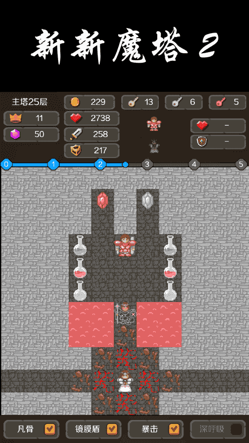 2、簡單模式,簡單版的新新魔塔,難度適中,適合對魔塔類游戲接觸較少的或曾經未通關的玩家選擇。通關數據不會進入名人堂。