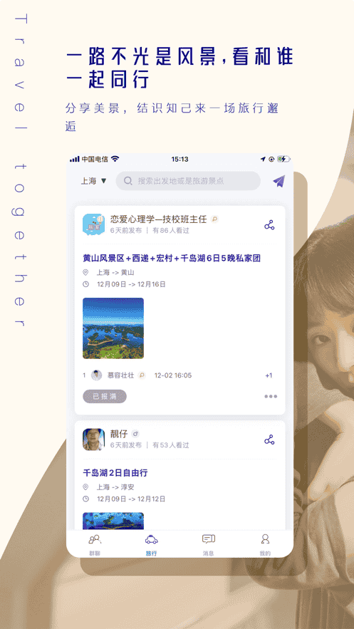4、如果你最近有旅行計劃,可以提前公布你的旅行計劃或者發現有趣的旅行計劃可以一起報名
