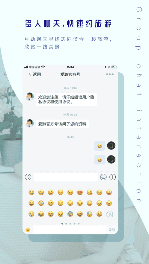 2、多人聊天,快速預約旅游,互動聊天,尋找志同道合的旅游,一路欣賞美景。