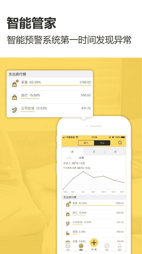 3、控制收支,通俗易懂的圖表,清晰分析收支。