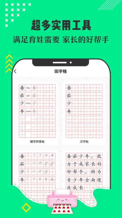 番茄少年App,父母養育孩子的好助手,打印大量學習材料,父母的好助手,孩子成長的好伴侶。