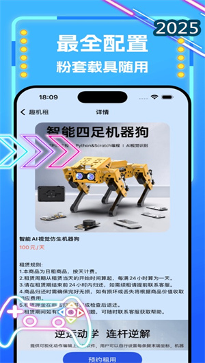 趣機租APP提供了多種熱門機器狗型號供用戶選擇,包括教育型、娛樂型和競技型機器狗。用戶可通過智能篩選功能,根據價格、功能和適用年齡等條件快速找到心儀的機器狗。平臺支持按天租賃模式,用戶可根據需求靈活選擇租賃時長,并通過在線支付功能完成訂單。此外,趣機租還提供了詳細的機器狗功能介紹和用戶評價,幫助用戶做出更明智的選擇。