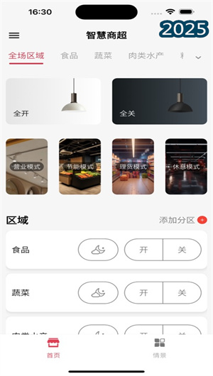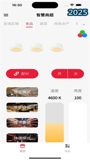 智慧商超APP支持對碼清碼功能,用戶可通過簡單的操作完成設備配對和解綁。平臺還提供了設備開關、亮度調節和色溫控制功能,用戶可根據需求調整燈光效果,營造舒適的購物環境。此外,智慧商超APP支持多種情景模式切換,如“促銷模式”、“節能模式”和“日常模式”,用戶可一鍵切換,滿足不同場景下的照明需求。