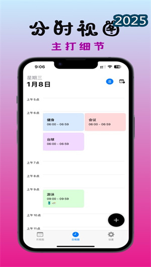 月光日歷APP提供月視圖和日視圖兩種模式,用戶可根據需求自由切換。月視圖以日歷形式展示整個月份的日程安排,幫助用戶快速了解日期分布和空閑時間,便于宏觀規劃。日視圖則專注于每一天的詳細日程,用戶可查看每個時間段的具體安排,確保時間分配合理。此外,月光日歷還支持周視圖和年視圖,滿足用戶多樣化的查看需求。