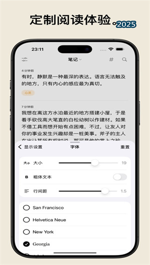 3.自定義界面與個性化設置:軟件提供“自定義界面”功能,用戶可以根據自己的喜好調整應用界面的主題顏色、字體大小和布局風格。通過“個性化設置”功能,用戶可以選擇簡約風格或更具個性化的設計,打造專屬的筆記空間。此外,軟件還支持“夜間模式”功能,用戶可以在夜間使用護眼模式,減少視覺疲勞。