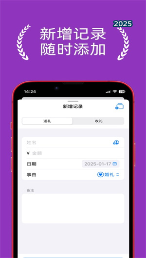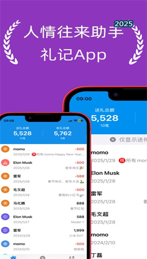 禮記App支持快速記錄送禮和收禮的金額,用戶只需輸入金額、事由、日期和備注,即可完成禮金記錄。通過禮記App的自動統(tǒng)計功能,系統(tǒng)會實(shí)時計算往來收支總額,幫助用戶清晰掌握人情賬目。此外,禮金記錄還支持分類查看功能,用戶可以按場合或時間篩選記錄,方便查詢和管理。
