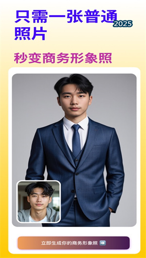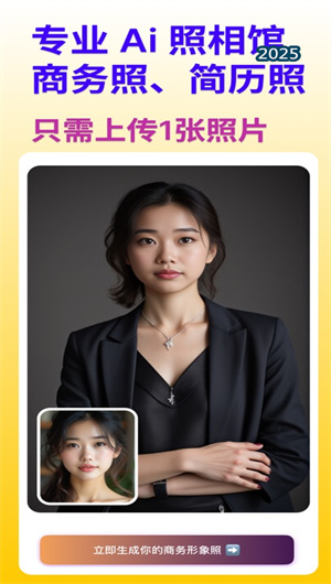 真藍(lán)照相館App是一款基于先進(jìn)AI技術(shù)的專業(yè)證件照和商務(wù)形象照生成工具,旨在為用戶提供高質(zhì)量、便捷的拍照體驗(yàn)。通過(guò)真藍(lán)照相館App,用戶只需上傳一張照片,即可利用AI智能生成功能,快速制作出符合商務(wù)、職業(yè)或社交場(chǎng)景需求的高品質(zhì)形象照。無(wú)論是用于職業(yè)名片、工卡制作,還是微信頭像、小紅書展示,真藍(lán)照相館App都能滿足用戶的多樣化需求。其多樣化的模板選擇、個(gè)性化定制功能和精準(zhǔn)的AI技術(shù),讓用戶輕松打造專業(yè)形象,成為職場(chǎng)和社交場(chǎng)合的亮點(diǎn)。