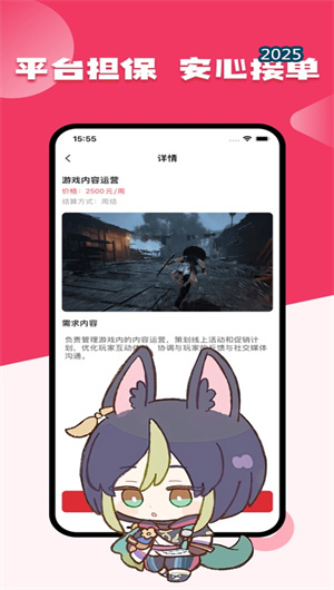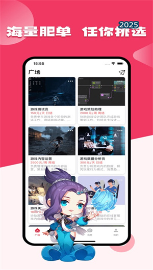大神兼職App提供豐富的兼職職位選擇,涵蓋游戲體驗、游戲測試、游戲策劃、游戲直播等多個領域。用戶可以根據自己的技能和興趣,通過智能匹配系統找到最適合的兼職機會,實現技能與需求的高效對接。