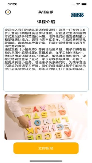 啟蒙早知道App提供豐富的啟蒙課程資源,涵蓋語言、數學、藝術等多個領域。家長可以通過課程分類功能輕松瀏覽各類課程,并根據孩子的興趣和需求在線預約。無論是線下課程還是線上課程,App都能為家長提供便捷的報名服務,幫助孩子開啟多元化的啟蒙學習之旅。