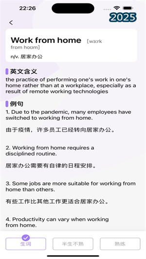 職場英語輕松學(xué)APP提供高頻詞匯記憶與復(fù)習(xí)功能,用戶可以通過記憶輔助系統(tǒng)和復(fù)習(xí)工具,輕松記憶和復(fù)習(xí)各行業(yè)的高頻詞匯。通過記憶優(yōu)化算法和復(fù)習(xí)計(jì)劃工具,用戶可以高效管理自己的詞匯學(xué)習(xí),確保每個(gè)詞匯都能牢固掌握。無論是日常溝通,還是專業(yè)術(shù)語,職場英語輕松學(xué)APP都能提供最便捷的記憶支持。