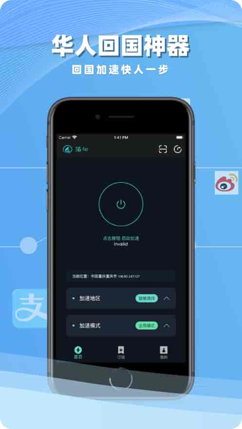 海歸Returnees海外華人歸國加速器App一鍵切換中國IP,獲得中國IP的VPN,一鍵加速國內應用。加速器采用先進的節點加速技術,智能分離, 提高效果,提高速度。