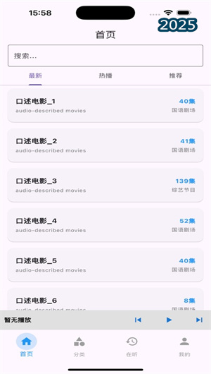 聽視無障礙APP內置豐富資源庫,涵蓋多種類型的電影、電視劇、綜藝節目等,并持續更新熱門內容。通過資源分類系統和內容更新工具,用戶可以輕松找到自己喜歡的影視內容。無論是經典大片,還是最新熱門劇集,聽視無障礙APP都能提供最全面的資源支持。