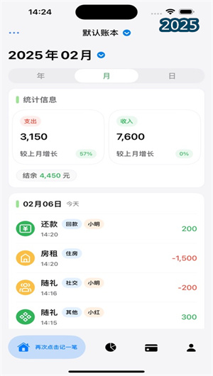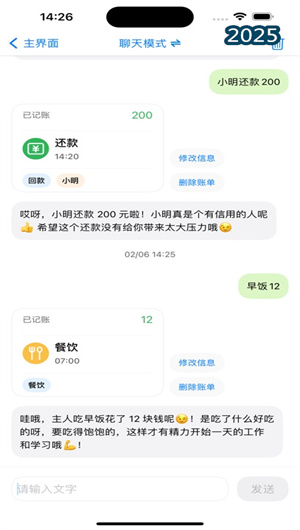 “泡泡記賬”采用AI對話記賬功能,用戶只需像聊天一樣輸入“昨天在711買了個三明治20塊錢”,系統即可通過智能語義識別自動分析內容,精準錄入收支信息。通過自然語言處理技術,軟件能夠理解用戶的日常表達,告別繁瑣的手動表單填寫。語音輸入功能還支持用戶通過語音快速記賬,進一步提升操作便捷性。