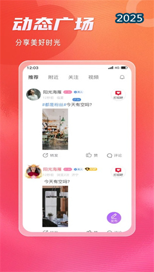 “奔奔有你”內(nèi)置智能推薦引擎,能夠根據(jù)用戶(hù)的行為數(shù)據(jù)和互動(dòng)記錄,高效篩選出優(yōu)質(zhì)對(duì)象。通過(guò)興趣標(biāo)簽匹配和社交活躍度分析,平臺(tái)能夠?yàn)橛脩?hù)推薦更符合需求的潛在伴侶。實(shí)時(shí)更新功能還會(huì)根據(jù)用戶(hù)的最新動(dòng)態(tài)調(diào)整推薦列表,確保匹配效果始終處于最佳狀態(tài)。