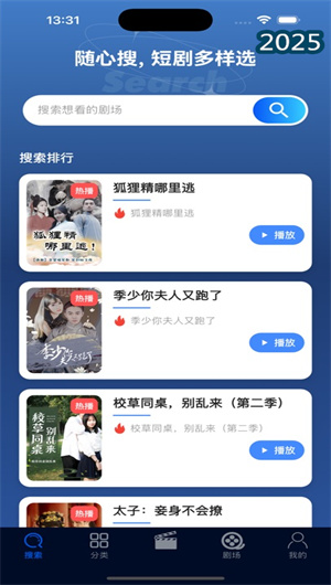 菠菜劇場匯聚了海量優質短劇資源,涵蓋愛情、懸疑、喜劇、奇幻等多種題材,滿足用戶多樣化的觀劇需求。無論是熱門爆款還是小眾佳作,用戶都能在菠菜劇場中找到心儀的劇集,享受豐富的短劇內容。