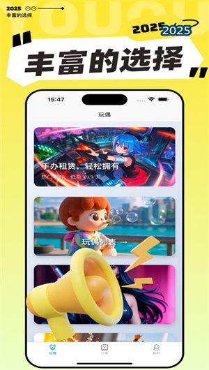 偶偶玩APP提供豐富的玩偶租賃服務,用戶可以通過平臺瀏覽和租賃各種二次元谷子玩偶,包括熱門動漫角色、游戲人物等。租賃流程簡單便捷,用戶只需選擇玩偶、租期和支付方式,即可快速完成訂單。這一功能特別適合想要體驗不同玩偶的用戶,幫助其以低成本享受多樣化的玩偶樂趣。