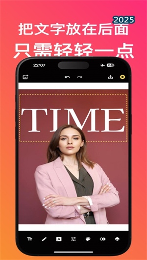 背景文字App為用戶提供了強大的工具支持,幫助用戶輕松制作創(chuàng)意社交內(nèi)容和層次感照片。通過智能主體識別、自動文字背景放置和多文字圖層管理功能,用戶可以快速打造獨特的視覺效果,吸引更多關注。無論是社交媒體展示還是藝術照片編輯,背景文字App都能為用戶提供靈感和便捷。