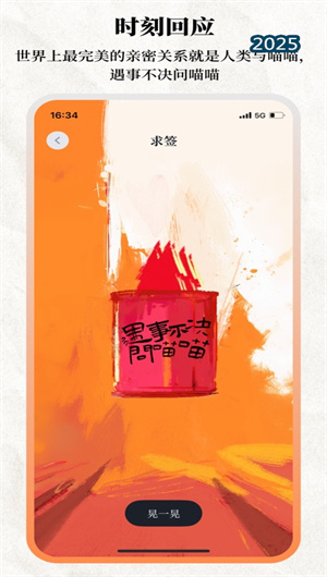喵喵廟App內置抽簽解惑功能,用戶可以通過抽簽獲得喵喵神的指引和建議。系統會根據用戶的具體困擾,提供深入淺出的簽文解讀,幫助用戶做出更明智的生活決策。通過現代演繹的傳統神社抽簽體驗,喵喵廟App讓生活決策變得輕松有趣,為用戶提供獨特的視角和思路。