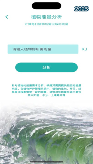 1. 軟件通過植物能量分析功能,評估植物的健康狀況和生長潛力,生成詳細的能量分析報告(如光合作用效率、養(yǎng)分吸收率、抗逆性等)。