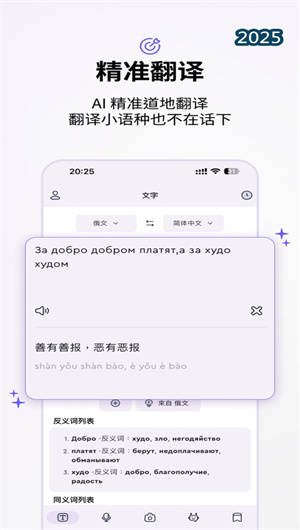 ANY翻譯App以其強大的AI技術、高精度的翻譯引擎和豐富的學習資源,成為語言學習與溝通的專屬神器。通過圖片識別翻譯、即時語音互譯和語法學習等功能,App幫助用戶輕松應對各種翻譯場景。其小語種翻譯能力、自定義知識庫擴展和多場景適用性,進一步提升了用戶體驗。ANY翻譯App不僅是語言學習者的得力助手,更是跨語言溝通的橋梁。