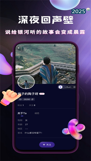 尋密App以其匿名社交、情感支持和興趣分享功能,成為用戶情感交流的理想平臺。通過匿名傾訴、興趣互動和情感咨詢,App幫助用戶釋放壓力、尋找共鳴并獲得專業支持。其智能匹配、情感樹洞和多樣化傾訴形式,進一步提升了用戶體驗和互動效果。尋密App不僅是情感宣泄的工具,更是用戶實現情感成長與心理支持的重要伙伴。