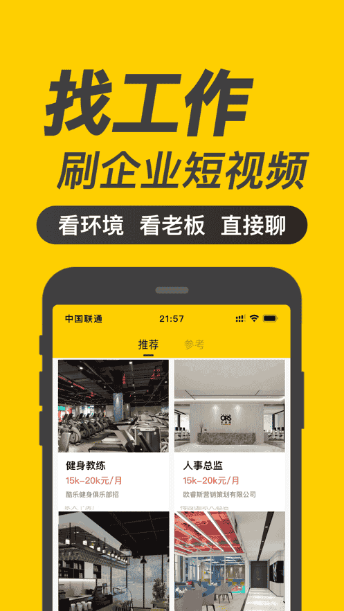2、找工作,刷企業短視頻,看環境看老板,直接聊天。