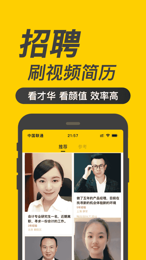 3、招聘,刷視頻簡歷,看應聘者才華看顏值,效率高。