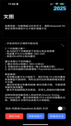 文圖App的核心功能之一是Markdown格式轉(zhuǎn)換,用戶可以將DeepSeek生成的帶有#*|等符號的Markdown內(nèi)容一鍵轉(zhuǎn)換為純文本格式。文圖App的轉(zhuǎn)換引擎能夠智能識別并清除多余的符號,確保轉(zhuǎn)換后的內(nèi)容干凈整潔,適合直接粘貼到Word、備忘錄等常用軟件中。這一功能解決了用戶在跨平臺使用Markdown內(nèi)容時的兼容性問題,提升了工作效率。