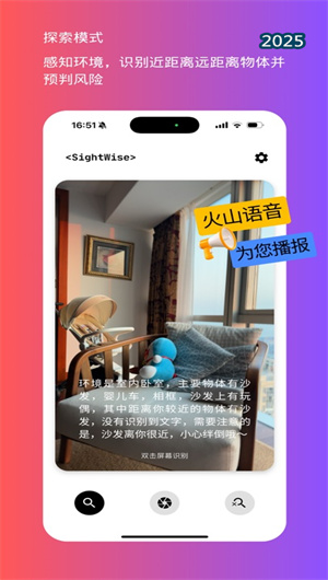 聲落App內置物體識別功能,能夠識別常見的家具、交通工具和生活用品,并通過語音提示告知用戶物體的位置和名稱。App還支持環(huán)境感知功能,用戶可以了解周圍的障礙物、行人和地形變化,確保出行安全。