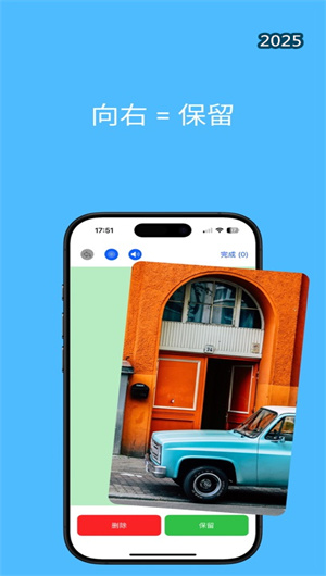 清理圖庫App采用滑動操作設計,用戶可以通過簡單的向右滑動保留圖片,或通過向左滑動刪除圖片。App還支持批量選擇功能,用戶可以一次性選擇多張圖片進行分類或刪除,大幅提升整理效率。