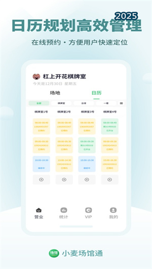 1. 一站式管理與資源整合:小麥場(chǎng)館通App通過“場(chǎng)地預(yù)訂系統(tǒng)”功能,用戶可以輕松完成場(chǎng)地的在線預(yù)訂、取消和修改操作,簡(jiǎn)化預(yù)訂流程。平臺(tái)還提供了“人員調(diào)度管理”功能,支持對(duì)場(chǎng)館工作人員的任務(wù)分配和調(diào)度,確保運(yùn)營效率。此外,用戶還可以通過“數(shù)據(jù)統(tǒng)計(jì)模塊”功能,實(shí)時(shí)查看場(chǎng)館的預(yù)訂情況、收入數(shù)據(jù)和用戶反饋,實(shí)現(xiàn)高效管理。