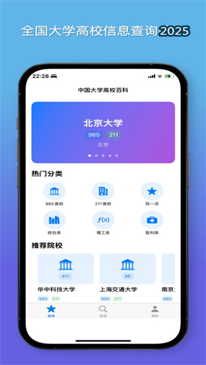 全國大學百科App是一款專為高考考生及家長設計的高校信息查詢與志愿填報助手,旨在幫助用戶輕松獲取全國高等院校的詳細信息,并基于權威數據提供智能推薦服務。通過海量數據收錄、精準分類和院校評估等核心功能,全國大學百科App為用戶提供全面詳實的高校信息,助力每一個志愿都成為最優選擇。無論是院校排名、學科評估,還是智能推薦和便捷收藏,全國大學百科App都能滿足用戶的多樣化需求,成為高考志愿填報的得力助手。